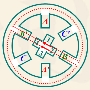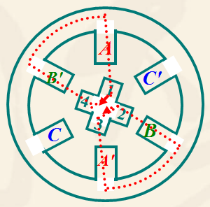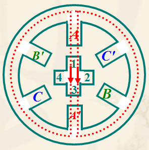 ![]() A 相通電使轉(zhuǎn)子1、3齒和 AA' 對(duì)齊。