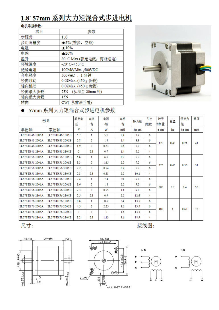 | 1.8°57mm系列兩相大力矩混合式步進電機 |